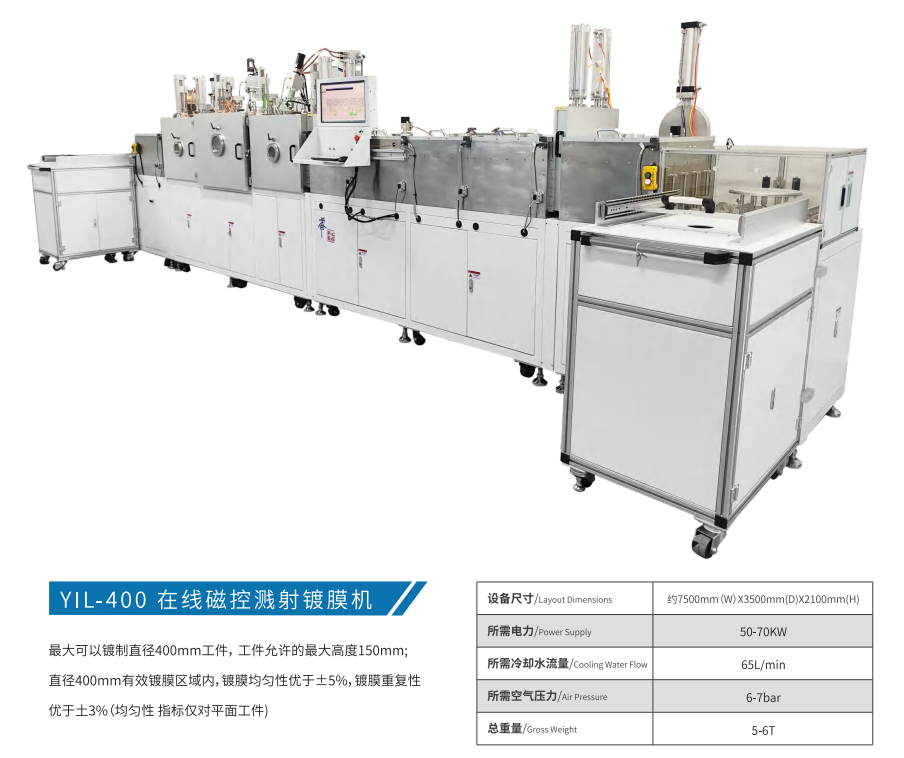 系统组成:单片/多片进样/储样室、传导室、多工艺腔室(不同数量/不同功能/相同功能等)、溅射/蒸发系统、离子源辅助系统、真空系统、加热/冷却系统、气体传输系统、全自动程序控制系统等。